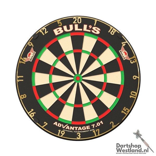 Dit is de Advantage 701 Professional Dartboard Dartborden van het merk Bull's. Deze gave Dartborden zijn nu verkrijgbaar bij jouw darts speciaalzaak. Met een nieuwe laag sisal, metalen cijferring in een hele stoere kleurstelling en extra dunne wires is dit het dartbord voor de beginnende en gevorderde darts speler. Je darts en dart accessoires koop je natuurlijk eenvoudig en snel bij Dartshopwestland.nl. De online en fysieke dartshop in de Metropool regio.