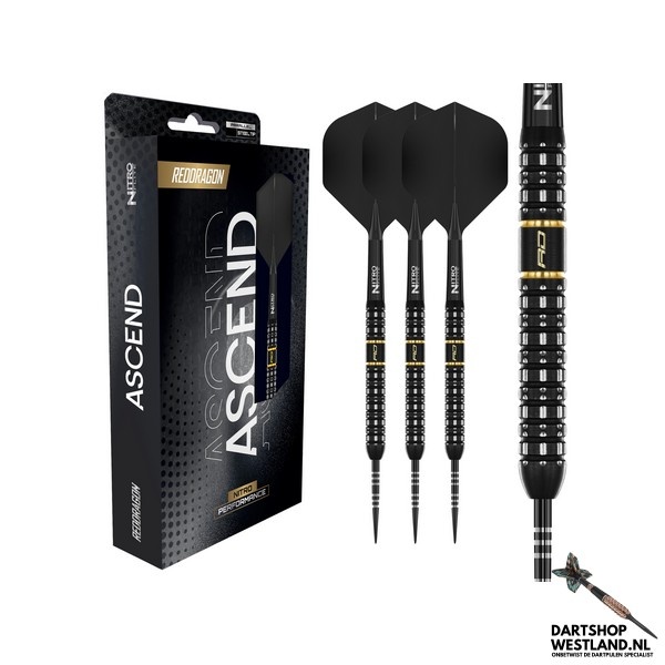 Stijg boven de concurrentie uit met de Red Dragon Ascend darts. Gemaakt van 90% tungsten voor perfecte balans en uitgerust met Nitroflite Integrated Flights en NitroTech shafts. Het verfijnde design met subtiele gouden accenten straalt kracht, precisie en klasse uit. Ontwikkeld voor spelers die hun niveau willen verhogen en vertrouwen zoeken bij elke worp. Ontdek de Ascend-serie nu bij Dartshopwestland.