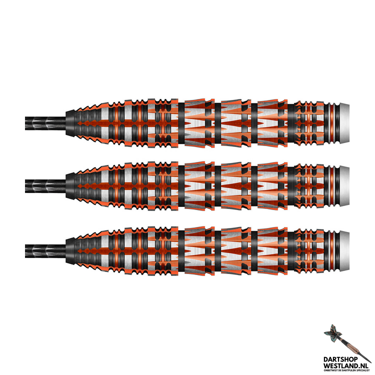 De Shot Rustin darts uit de Badlands-serie combineren rauwe westernstijl met ultieme precisie. Gemaakt van hoogwaardig 90% tungsten met een perfect gebalanceerde grip en verfijnde afwerking. Verkrijgbaar in 23, 24 en 25 gram (steel tip). Elke set wordt geleverd met een exclusief Badlands-boekje in comic-stijl en luxe verpakking.