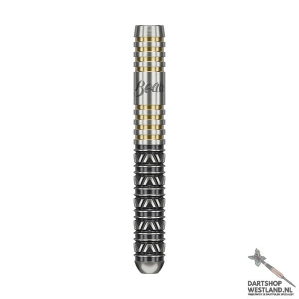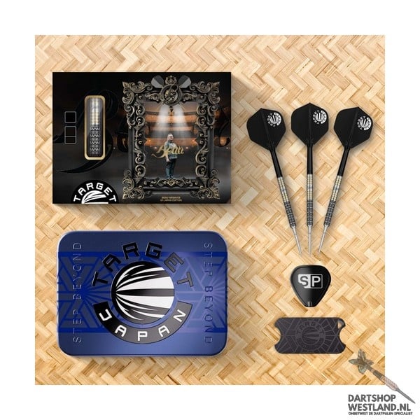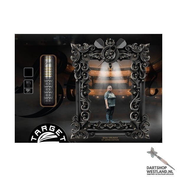 De Beau Greaves Japan Edition is een exclusief ontworpen 90% tungsten spelersdart, beschikbaar in 22 en 23 gram, ontwikkeld in samenwerking met de meervoudig wereldkampioene Beau Greaves. Deze straight barrel is volledig uitgebalanceerd voor maximale controle en nauwkeurigheid. Het voorste deel van de barrel bevat verfijnde V-cuts die symbool staan voor overwinning en zorgen voor een stabiel, herkenbaar vingergevoel. Aan de achterkant zorgen dubbele ringgroeven voor consistente grip, met name ideaal voor rear-grippers. De set wordt geleverd in de premium Signature Series Tin en bevat de gloednieuwe Multi Functional Point Guard, die niet alleen de punten beschermt maar ook als stabiele dartstand kan worden gebruikt. Met zijn PVD Black & Gold afwerking, hoogwaardige snijtechnieken en luxueuze presentatie is dit een absolute must-have voor darters die een professionele spelersdart willen met hoogwaardige afwerking en uitzonderlijke prestaties. Verkrijgbaar bij Dartshopwestland.nl.