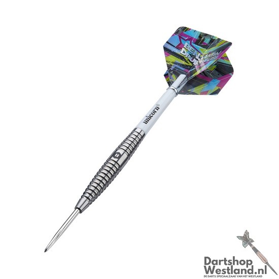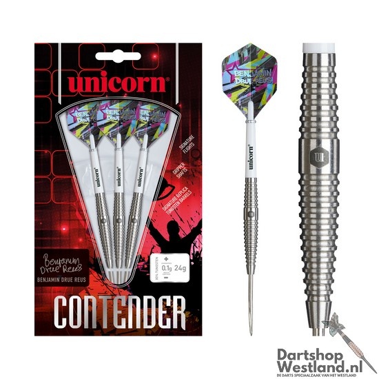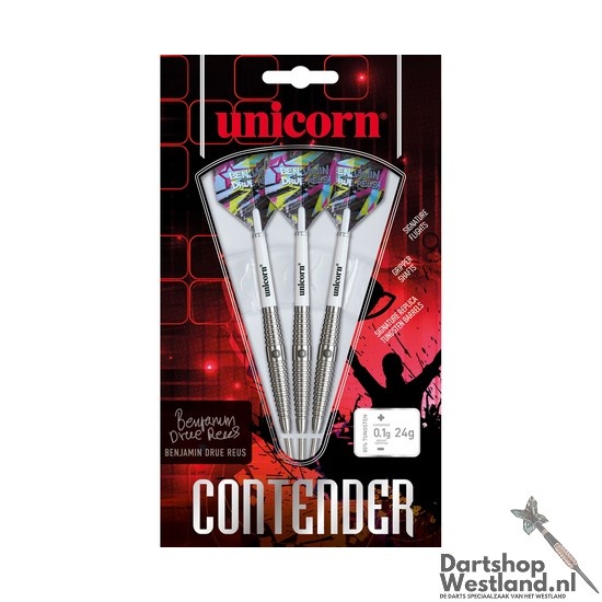Til je spel naar een hoger niveau met de Unicorn Benjamin Drue Reus 80% Steeltip Darts, speciaal ontworpen voor spelers die duurzaamheid en controle in elke worp zoeken. Gemaakt van 80% tungsten bieden deze darts uitstekende balans en veerkracht, perfect voor intensief spel. De taps toelopende barrel met ringed grip zorgt voor een comfortabele grip, wat nauwkeurige en consistente worpen mogelijk maakt.