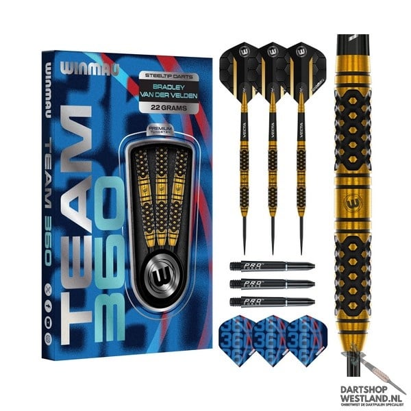 De Bradley van der Velden darts (22 gram) zijn ontwikkeld in samenwerking met één van de meest veelbelovende Nederlandse darters. Deze darts bieden een perfecte balans tussen controle, precisie en een moderne gripstructuur. De barrels zijn vervaardigd uit hoogwaardig tungsten en ontworpen voor darters die zowel finesse als stabiliteit zoeken in hun worp. Dankzij het strakke profiel kun je eenvoudig strakkere groupings realiseren en je scores verbeteren. De grip is subtiel maar effectief, waardoor de darts prettig in de hand liggen en geschikt zijn voor vrijwel elke speelstijl. De set wordt geleverd met officiële player flights en kwalitatieve shafts. Bestel de Bradley van der Velden darts eenvoudig via Dartshopwestland.nl of kom ze testen op onze dartbanen.