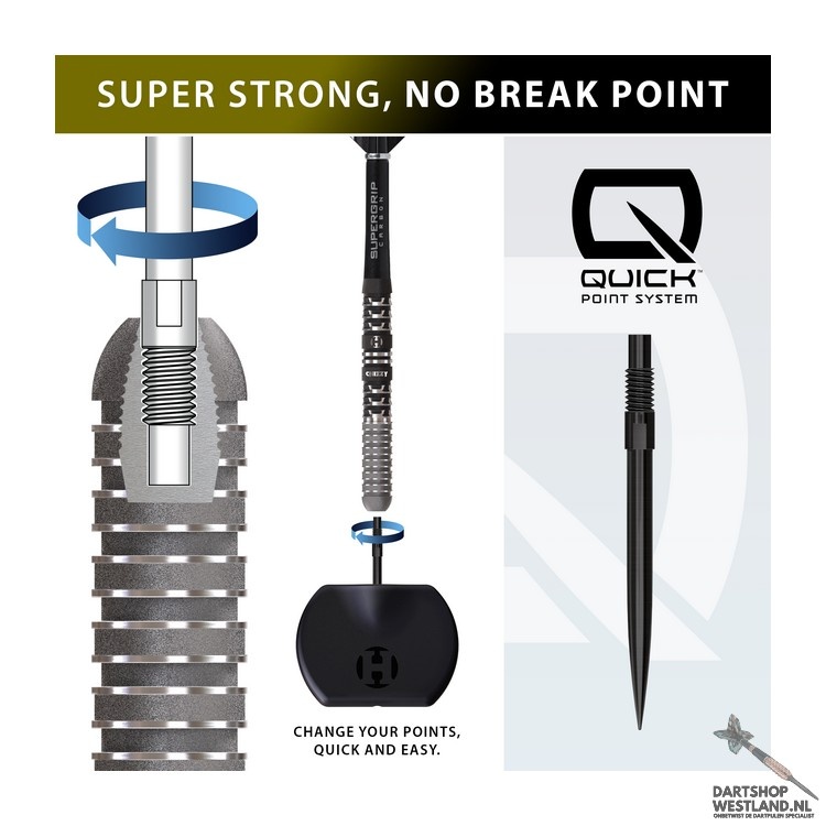 Dankzij de Harrows Quick Point-technologie pas je in enkele seconden de lengte en stijl van je dartpunten aan. Zo stem je jouw setup perfect af op iedere wedstrijd en speelconditie – ideaal voor spelers die altijd op zoek zijn naar dat beslissende voordeel.