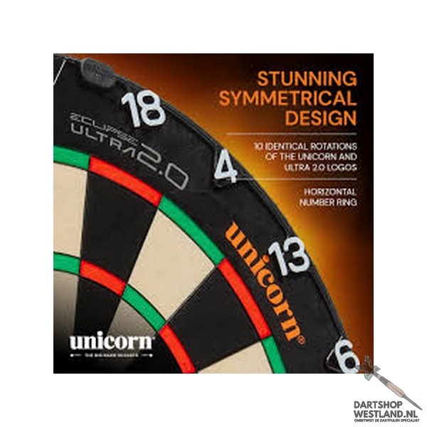 Ervaar precisie en stijl met de Unicorn Eclipse Ultra 2.0 Dartbord, ontworpen voor spelers die alleen het beste eisen. Dit dartbord van toernooikwaliteit beschikt over een naadloos speeloppervlak met ultra-hoge contrastsegmenten, wat zorgt voor uitstekende zichtbaarheid en langdurige prestaties. Het klassieke dartbordkleurontwerp is verbeterd met geavanceerde vakmanschap voor een premium speelervaring.