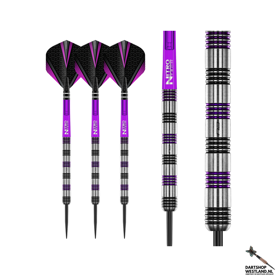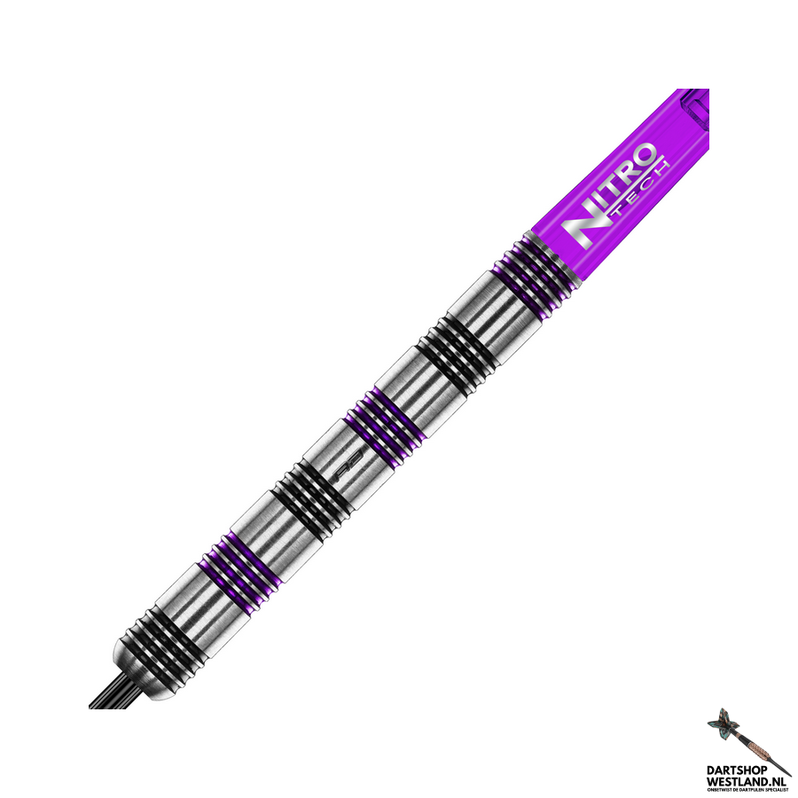 De Gemma Hayter V1 dartpijlen zijn gemaakt van 90% tungsten in een klassiek parallel profiel. Met zes gripzones met ringen bieden deze pijlen maximale controle en een soepele release. De gepolijste zilveren afwerking met paarse accenten geeft de darts een elegante en krachtige uitstraling.