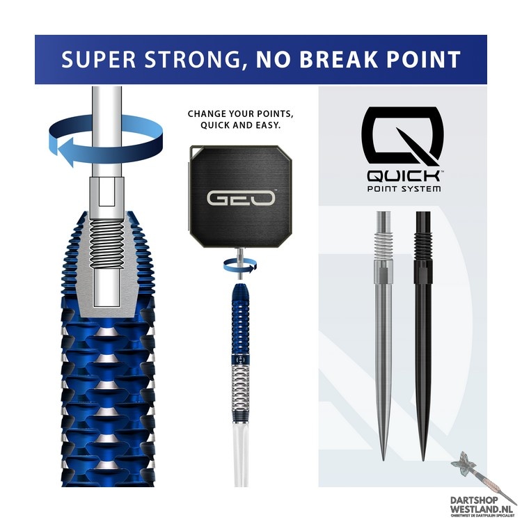 Harrows combineert innovatie met functionaliteit. Iedere set Geo-darts is uitgerust met Quick Point-technologie, waarmee je binnen enkele seconden de lengte van je dartpunten kunt aanpassen. Zo pas je jouw setup eenvoudig aan voor maximale zekerheid aan de oche.