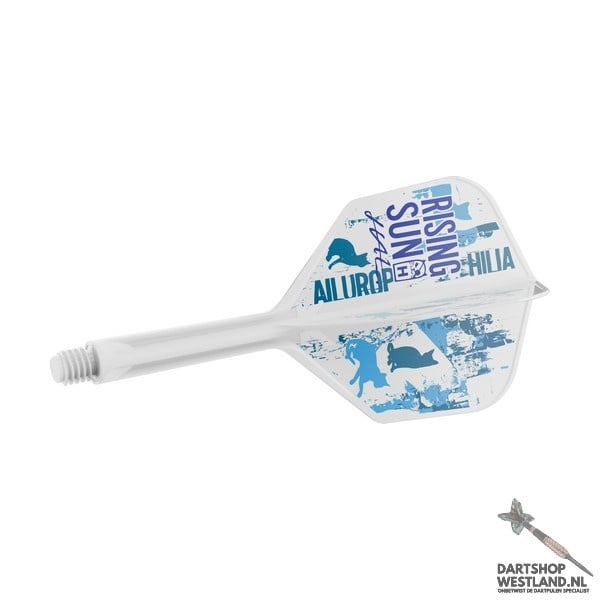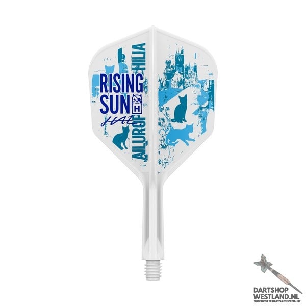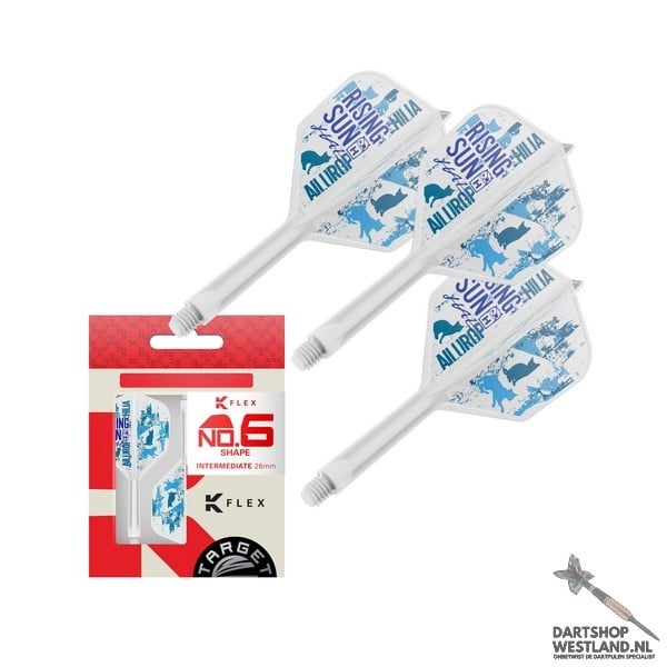 De K-FLEX Rising Sun Gen2 No.6 flights zijn ontworpen in samenwerking met Haruki Muramatsu en brengen een combinatie van Japanse verfijning en speelse elegantie. Deze geïntegreerde flights & shafts zijn verkrijgbaar in Short, Intermediate en Medium en hebben een stijve K-FLEX base met flexibele flightbladen voor optimale stabiliteit en perfecte hoekvastheid. Het design bestaat uit artistieke cats & oil painting elementen die verwijzen naar Muramatsu’s relaxte stijl, gecombineerd met brushstroke patronen en een frisse blauwe kleurencombinatie. De No.6 shape zorgt voor een iets snellere vlucht dan een standaard flight, ideaal voor spelers die een directe lijn naar het bord willen. Dankzij de éénstuk-constructie heb je geen last meer van loskomende flights of verbogen shafts. Een duurzame, lichte en extreem betrouwbare keuze voor iedereen die maximale consistentie wil. Verkrijgbaar bij Dartshopwestland.nl.