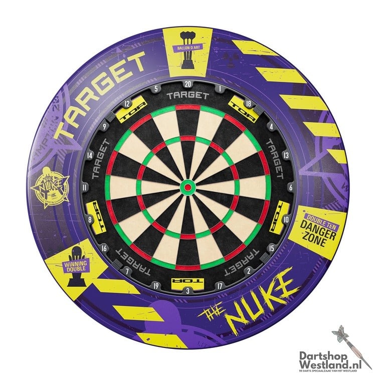 Met de exclusieve World Champion 2025 Bundle haal je niet alleen kwaliteit in huis, maar ook een stukje dartgeschiedenis. Deze complete set brengt de professionele klasse van de Target Tor dartboard samen met een speciaal ontworpen PU surround in de kenmerkende kleuren paars en geel – een krachtige verwijzing naar Littler’s wereldtitel.