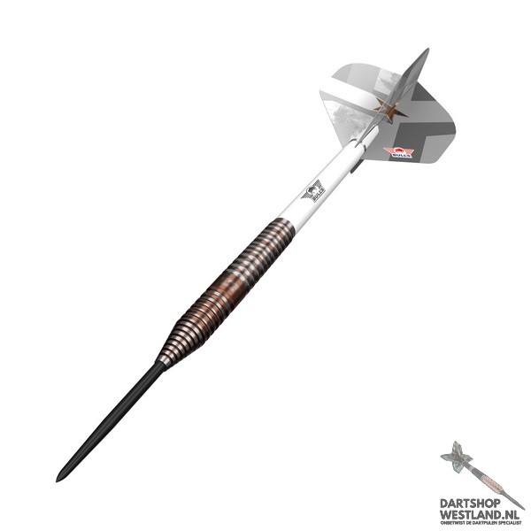 Max Hopp 90% E5 Steeltip (22g / 23g / 24g / 25g) is ontworpen voor spelers die houden van een moderne barrelvorm met een comfortabele, gecontroleerde grip. De 90% tungsten torpedo-vormige barrel helpt bij een stabiele vlucht en consistente worpen. De grip bestaat uit afwisselende ringgripzones met een gladder middengedeelte, waardoor je automatisch dezelfde vingerplaatsing behoudt bij iedere worp. De subtiele brons-zilveren afwerking geeft deze darts een stijlvolle en herkenbare uitstraling. Dankzij de brede keuze in gewichten is deze set geschikt voor zowel technische als krachtige darters. Verkrijgbaar bij Dartshop Westland, dé dartshop online voor darts Den Haag en omgeving.