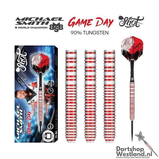 De Michael Smith Game Day 90% Tungsten Steeltip Darts, ontwikkeld in samenwerking met de PDC Wereldkampioen 2023 Michael Smith, zijn ontworpen om je spel naar een hoger niveau te tillen. Dit centraal verzwaarde, rechte barrelontwerp heeft een 90% tungsten constructie die duurzaamheid en controle in balans brengt, wat je een competitief voordeel geeft. Met een micro-schulp ringontwerp in het voorste gedeelte bieden deze darts een betrouwbare grip, terwijl de vierkante groeven gescheiden door een haai-ring consistente vingerplaatsing mogelijk maken voor nauwkeurige worpen.