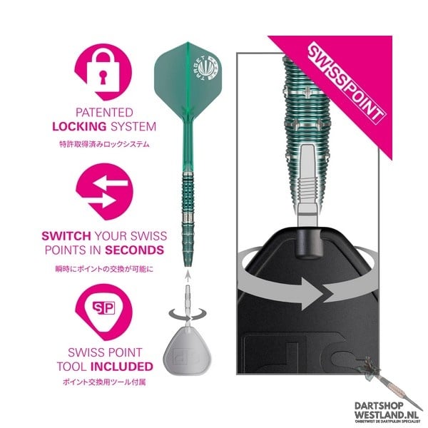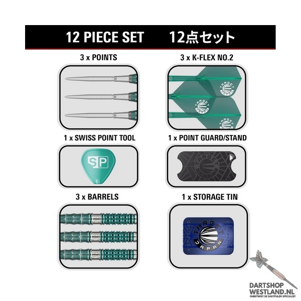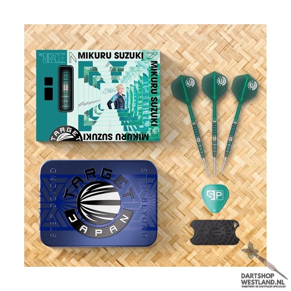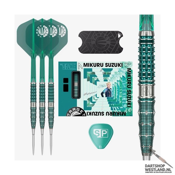 De Mikuru Suzuki Gen 7 steeltip darts vertegenwoordigen de nieuwste generatie binnen Target’s populaire “Miracle” lijn, ontwikkeld in nauw overleg met Mikuru Suzuki zelf. Deze 90% tungsten barrel heeft een modern, verfijnd profiel met een mix van scherpe, diepe ringgroeven en subtiele microcuts die zorgen voor een stabiele grip zonder agressief aan te voelen. De Gen 7 introduceert een vernieuwd balance point dat de worp soepeler en consistenter maakt, ideaal voor spelers die rust en controle zoeken in hun release. De kenmerkende blauw-paarse PVD afwerking geeft de darts een luxueus en herkenbaar uiterlijk, volledig in lijn met Mikuru’s elegante stijl. De set wordt geleverd in een premium Japan Edition verpakking, met bijpassende flights en shafts die het geheel compleet maken. De Mikuru Suzuki Gen 7 is perfect voor darters die topkwaliteit willen combineren met een zachte, gecontroleerde grip en een krachtige vlucht. Verkrijgbaar bij Dartshopwestland.nl.