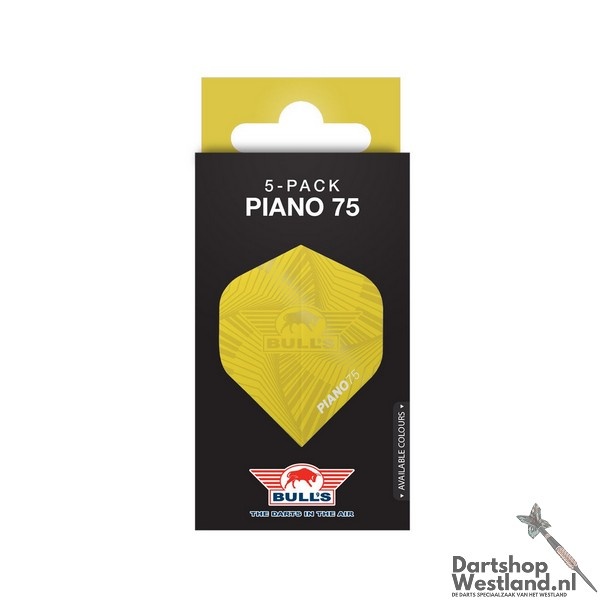 Dit zijn de flights van het merk Bulls. Dit is de Piano 75 micron - No.2 - 5-Pack. Deze flight is beschikbaar in verschillende kleuren. Bekijk alle flights van DartshopWestland online of bezoek onze darts winkel in Naaldwijk. De grootste collectie dartpijlen in de regio vind je bij DartshopWestland.nl.