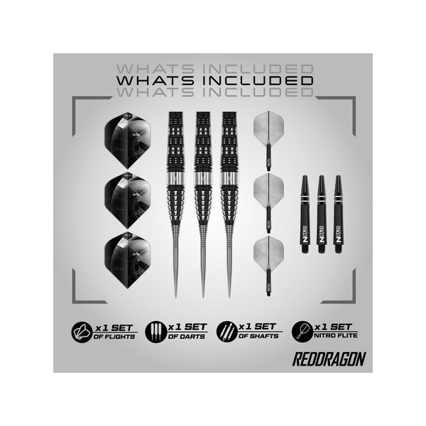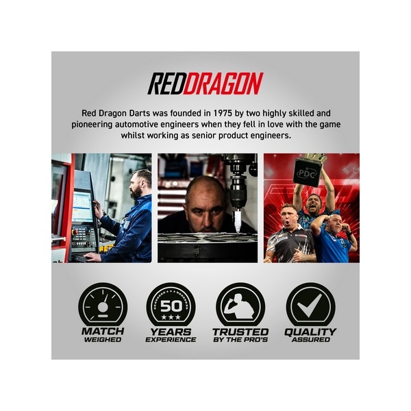 Beheers de oche met de Red Dragon Recon darts. Deze 90% tungsten darts combineren een krachtig zwart-zilver design met geavanceerde angled milling voor maximale grip, controle en precisie. De dual-tone PVD coating zorgt niet alleen voor uitstraling, maar ook voor extra gripfeedback en duurzaamheid. Afgewerkt met het Nitroflite Integrated Flight System voor tour-level consistentie. Perfect voor competitie én training. Bestel jouw Red Dragon Recon darts nu bij Dartshopwestland.