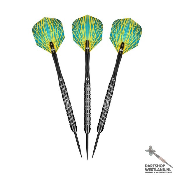 Rowby-John Rodriguez Baha 90% Steeltip (25g) is een krachtige Pro Series dart met een uitgesproken gripopbouw en een professioneel speelgevoel. De achterzijde van de barrel is gesneden met een 2:1 verhouding ringgroeven, gecombineerd met 45-graden milling voor extra textuur en grip. In het midden zorgen meerdere snijtechnieken voor een herkenbaar hexagonaal gevoel, waardoor je direct weet waar je vingers zitten. De voorzijde weerspiegelt de grip van de achterkant en loopt soepel door naar een gladde nose voor een snelle, ongehinderde release. Deze dart is ideaal voor spelers die een agressieve maar gecontroleerde worp willen. Bestel Rowby-John Rodriguez darts eenvoudig bij Dartshop Westland, dé dartshop online voor serieuze darters uit Westland en darts Den Haag.
