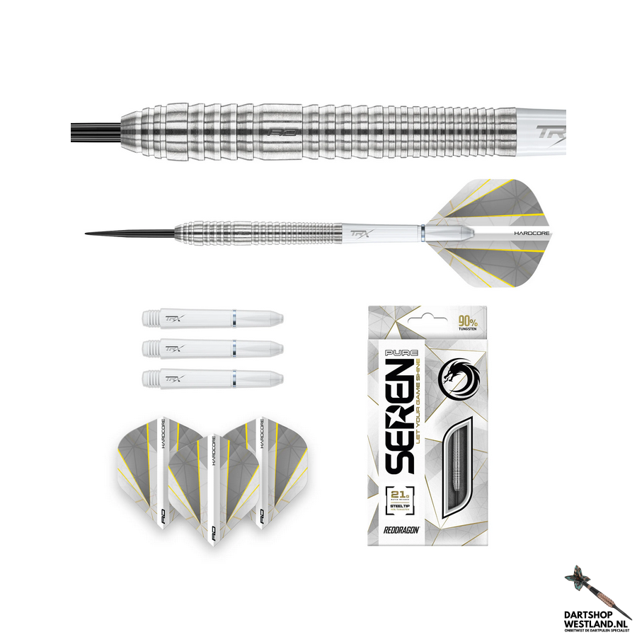 Seren 2 Pure- 90% - Dartpijlen . De Seren Pure levert vier 90% wolfraamprofielen, elk ontworpen om gripflexibiliteit en optimale prestaties te leveren, om elke aspirant-speler te helpen zijn vaardigheden aan te scherpen en naar de sterren te reiken. De Seren Pure is ontworpen met opvallende contouren en een traditionele zilveren afwerking en zorgt ervoor dat uw optreden centraal staat.