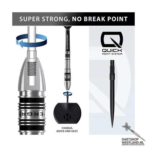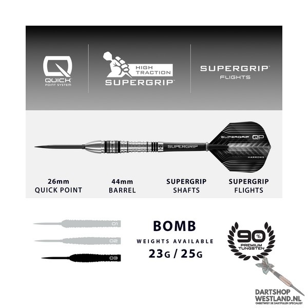 Harrows Supergrip QP Bomb 90% Tungsten – Complete dartset met Quick Point System