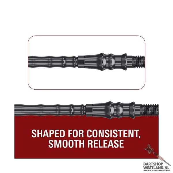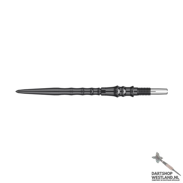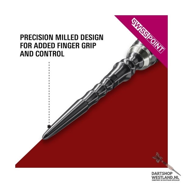 De Japan Premium Swiss Point Black is een high-end Swiss Point uitvoering die volledig is ontwikkeld door Target Japan. Deze luxe punten zijn beschikbaar in 30mm, 35mm en 40mm en voorzien van een slijtvaste zwarte PVD-coating. De vorm is gebaseerd op de populaire Storm-profile, waardoor de overgang tussen barrel en punt volledig naadloos is, wat zorgt voor minder flight-schade en een stabielere vlucht. De voorzijde bevat subtiele contourzones die ideaal zijn voor front-grippers, terwijl de achterkant is voorzien van drie fijne shark-cuts voor perfecte vingergeleiding en extra controle. Dankzij het Swiss Point systeem wissel je punten binnen enkele seconden met behulp van de SP-tool. De punten zijn vacuümgehard voor extra levensduur, minder kans op buigen en consistente prestaties tijdens lange sessies. Perfect voor darters die stabiliteit, stijl en premium afwerking willen. Verkrijgbaar via Dartshopwestland.nl.